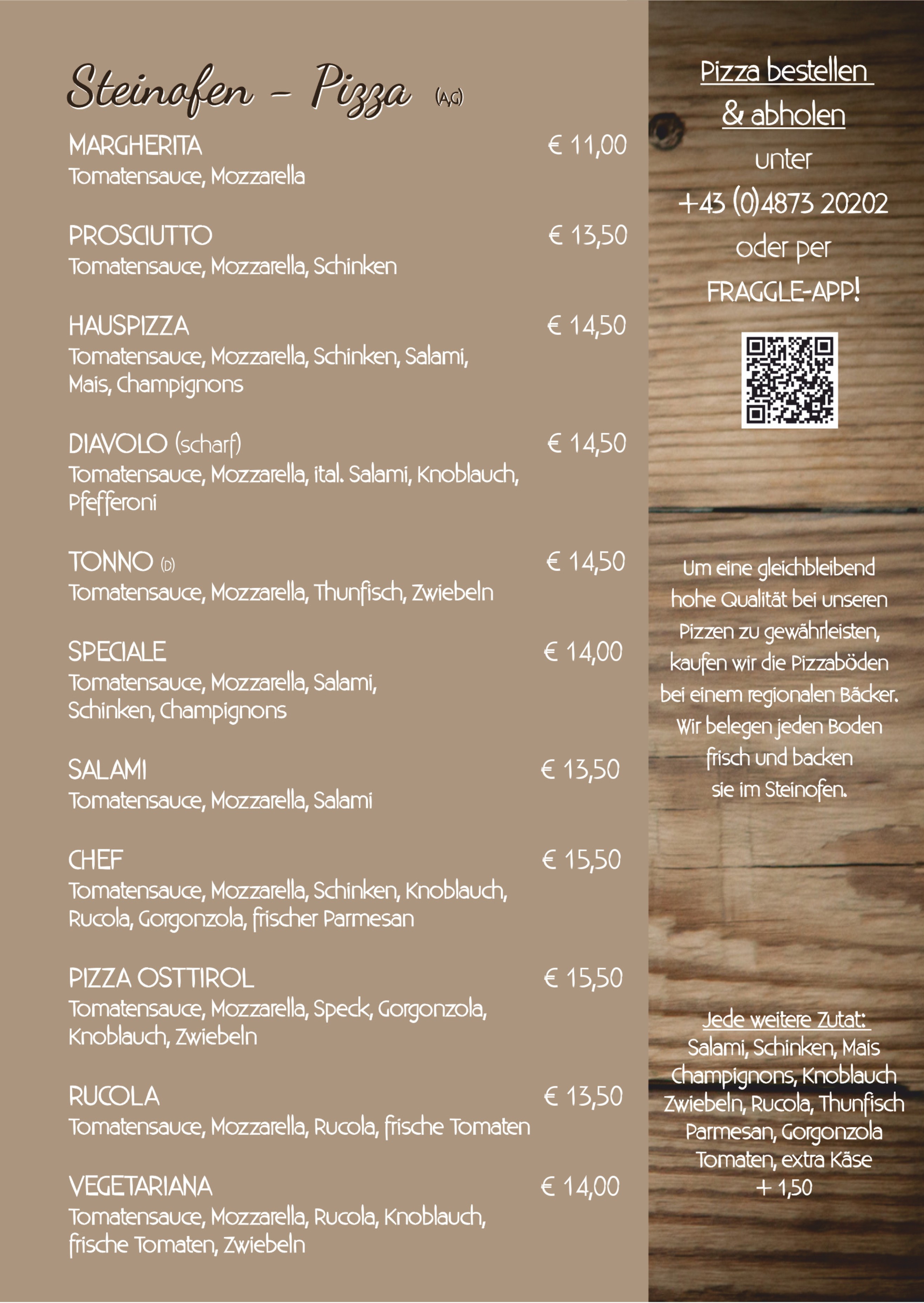 Alle Speisen und Pizzen können Sie gerne mitnehmen.