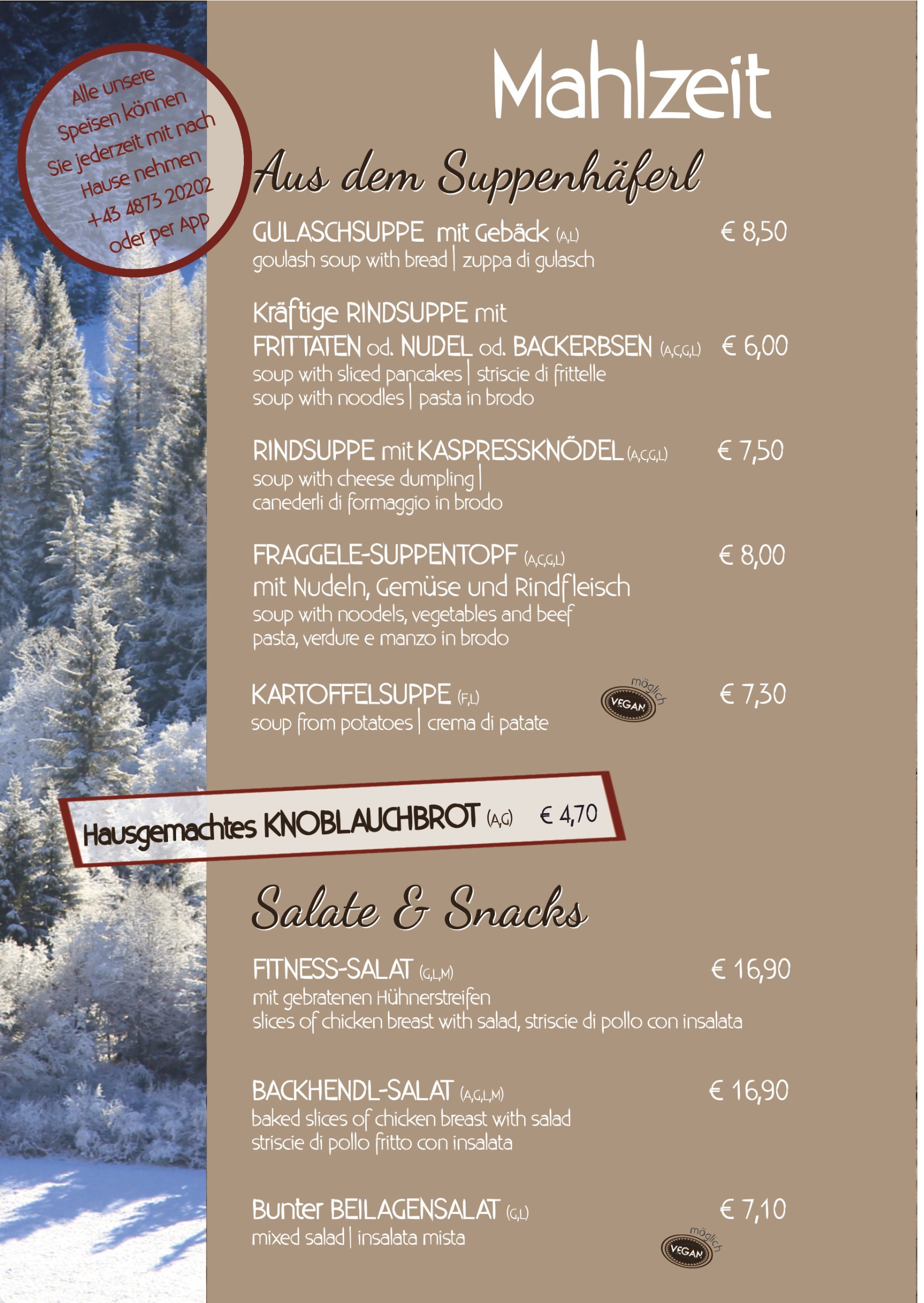 Unsere Speisekarte entnehmen Sie bitte unserer APP.